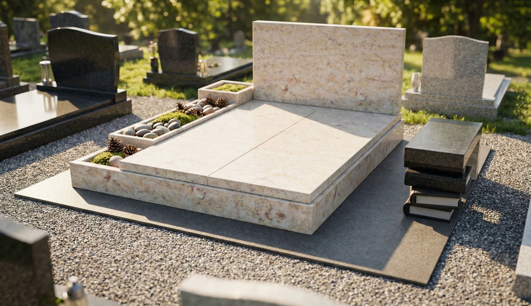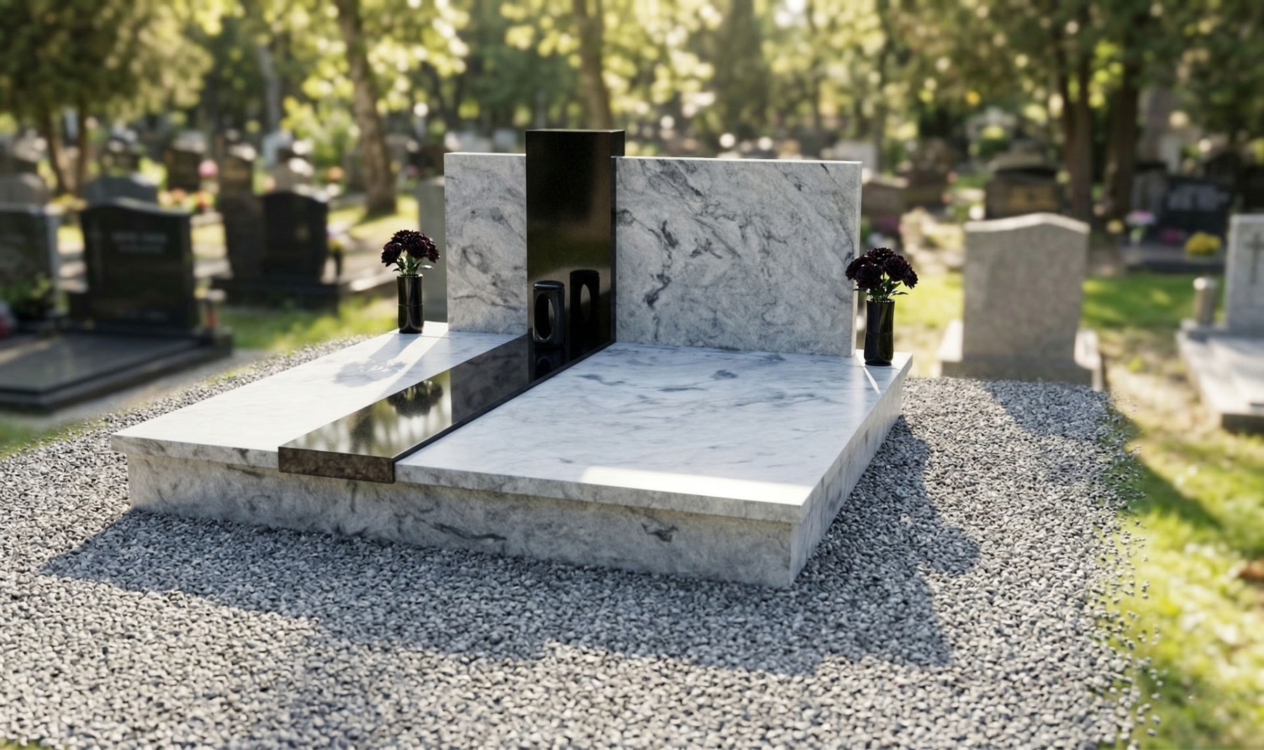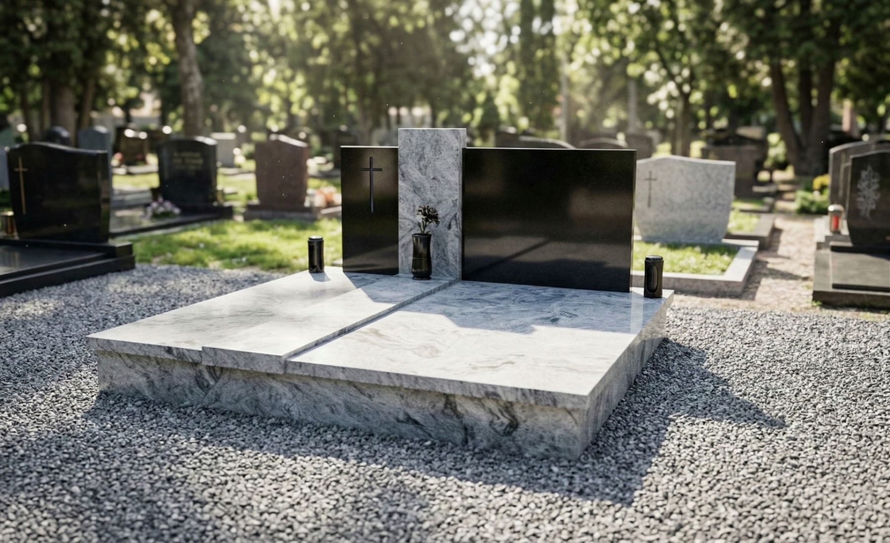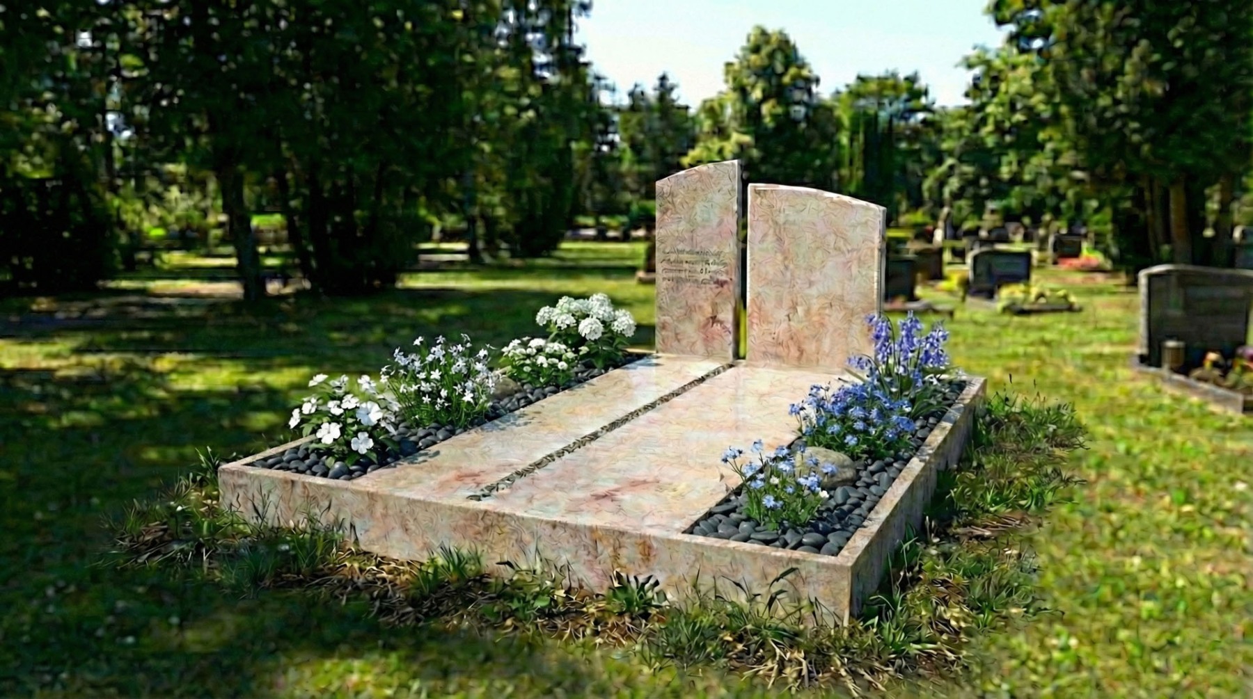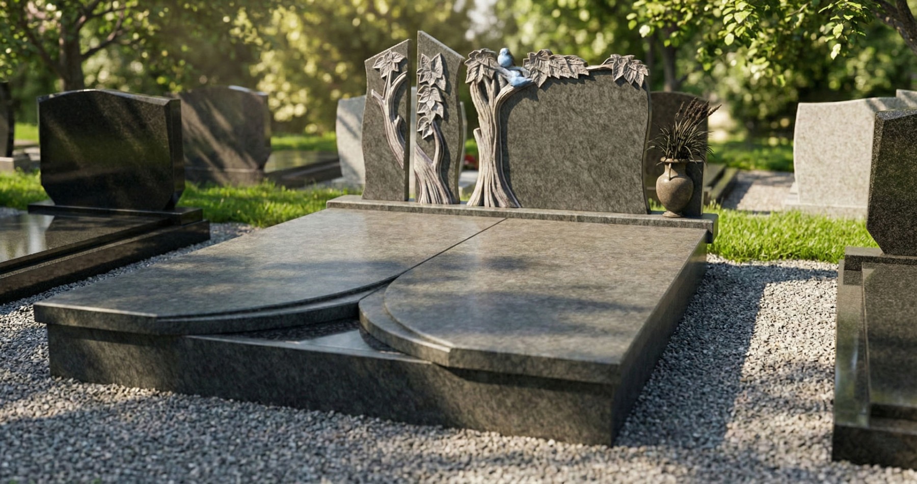 Dvojhroby s náhrobnou tabuľou ručne vyrábame u nás dielni z prírodnej žuly alebo mramoru podľa požiadaviek zákazníka. Prírodný kameň má dokonalé vlastnosti voči naším klimatickým podmienkam.
